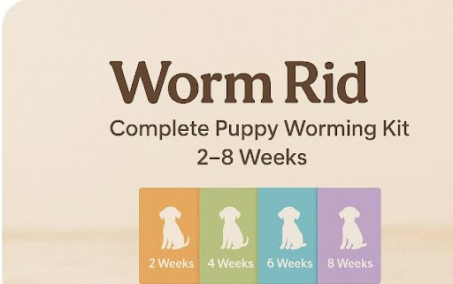 Each kit includes pre-measured, color-coded worming doses for every stage of early puppy growth—making worming simple, accurate, and stress-free for both breeders and new puppy owners.